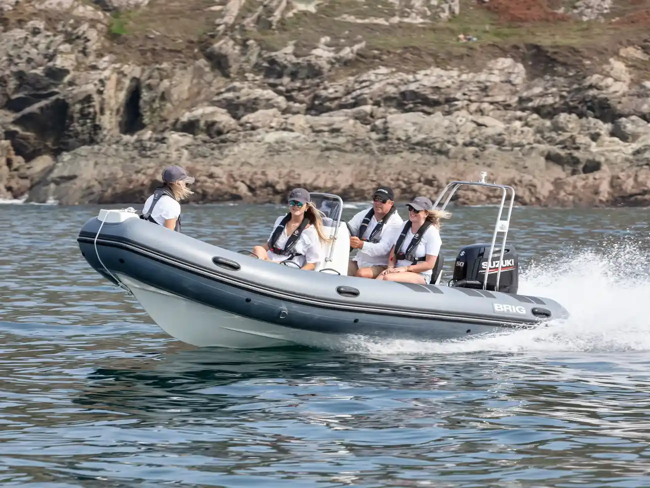 A slightly more compact version of the 570, the Falcon Rider 500 accommodates up to nine passengers, with storage in lockers under each seat and in the bow. The Falcon Rider 500 is offered in three varieties to best suit your needs: The Original Falcon 500 has an open cockpit. The Falcon 500L features a luxuriously-styled console with deep armchair cushions and extra leg room for long haul comfort. The Falcon 500S has a sports console with pillion seating.