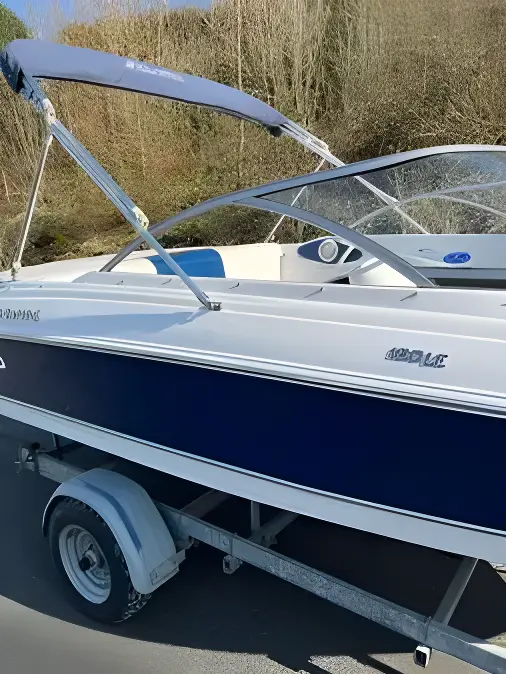 Mercruiser 3.0L 135HP Petrol Inboard with Alpha One Gen II Sterndrive, Navy Blue Colour Band, Bimini Frame and Canvas, Cockpit and Bow Tonneau Covers, Indespension Trailer, Stereo System, Swivel Helm and Co Pilot Bucket Seats, Cockpit Carpet, Rear Bench Seat and Aft Deck Sunpad, Faria Depth Gauge, Bilge Pump, Navigation Lights.