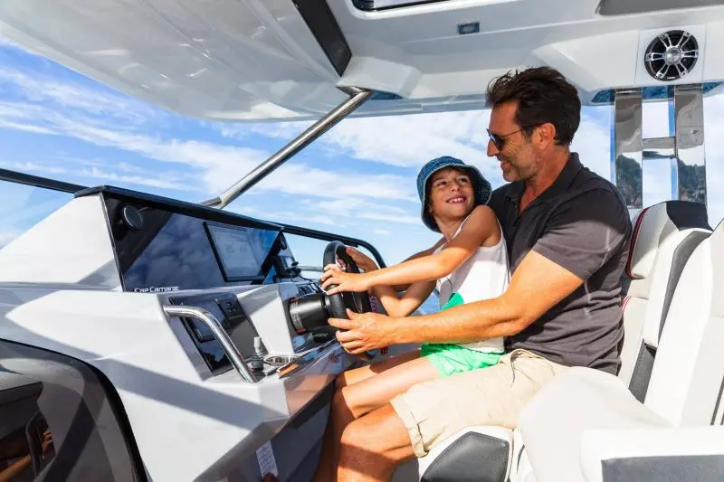In day boat mode, whether out on the water with friends or cruising with family, Cap Camarat 10.5 WA has but one goal: to enable you to take full advantage of the sun and the sea.