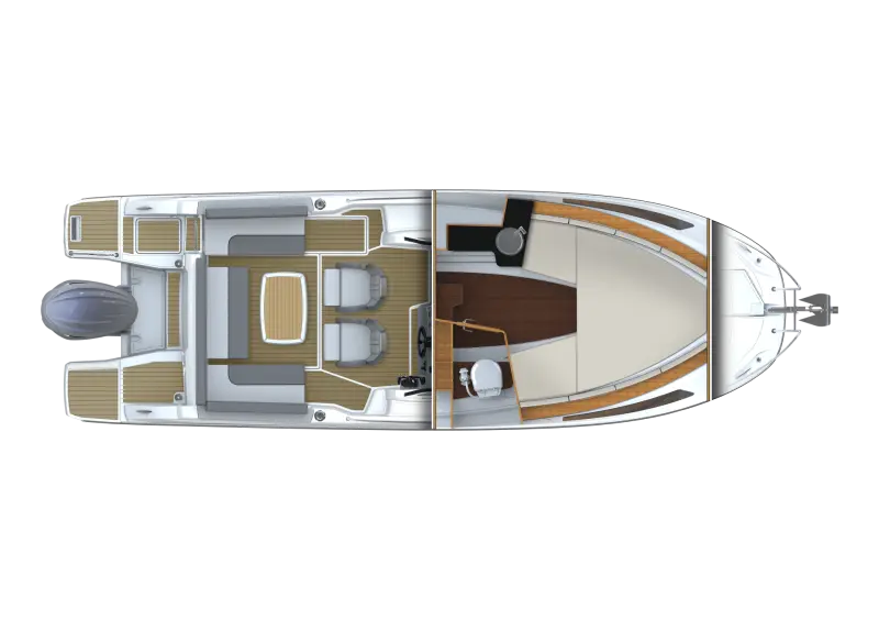 Designed for zipping across the water, the Cap Camarat 7.5 WA provides exceptional performance. The V-shaped hull designed by Michael Peters ensures good seakeeping with ex-cellent handling and manoeuvrability, while cruising and at port, with the optional bowthruster. The modular cockpit enables you to sit comfortably on crossings, and then to fold away the bench seating in seconds to access the storage locker or to facilitate movement about the boat while at anchor.