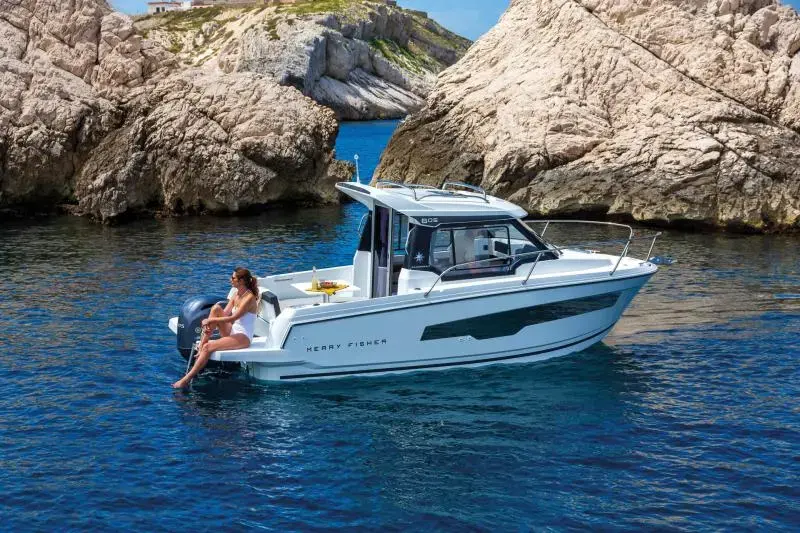 The Merry Fisher 605 offers easy, comfortable access to your first adventures at sea. Safe and protective, designed on one level, it is well adapted for the entire family, in all seasons, to enjoy numerous activities: fishing at dawn, swimming, snorkelling, an af-ternoon anchorage for drinks in the coves… Or the simple pleasure of looking at the sea, sheltered from the wind, through vast windows in the wheelhouse. Trailerable and easy to handle, this boat has every advantage for the sea to become a new playground for your entire family.