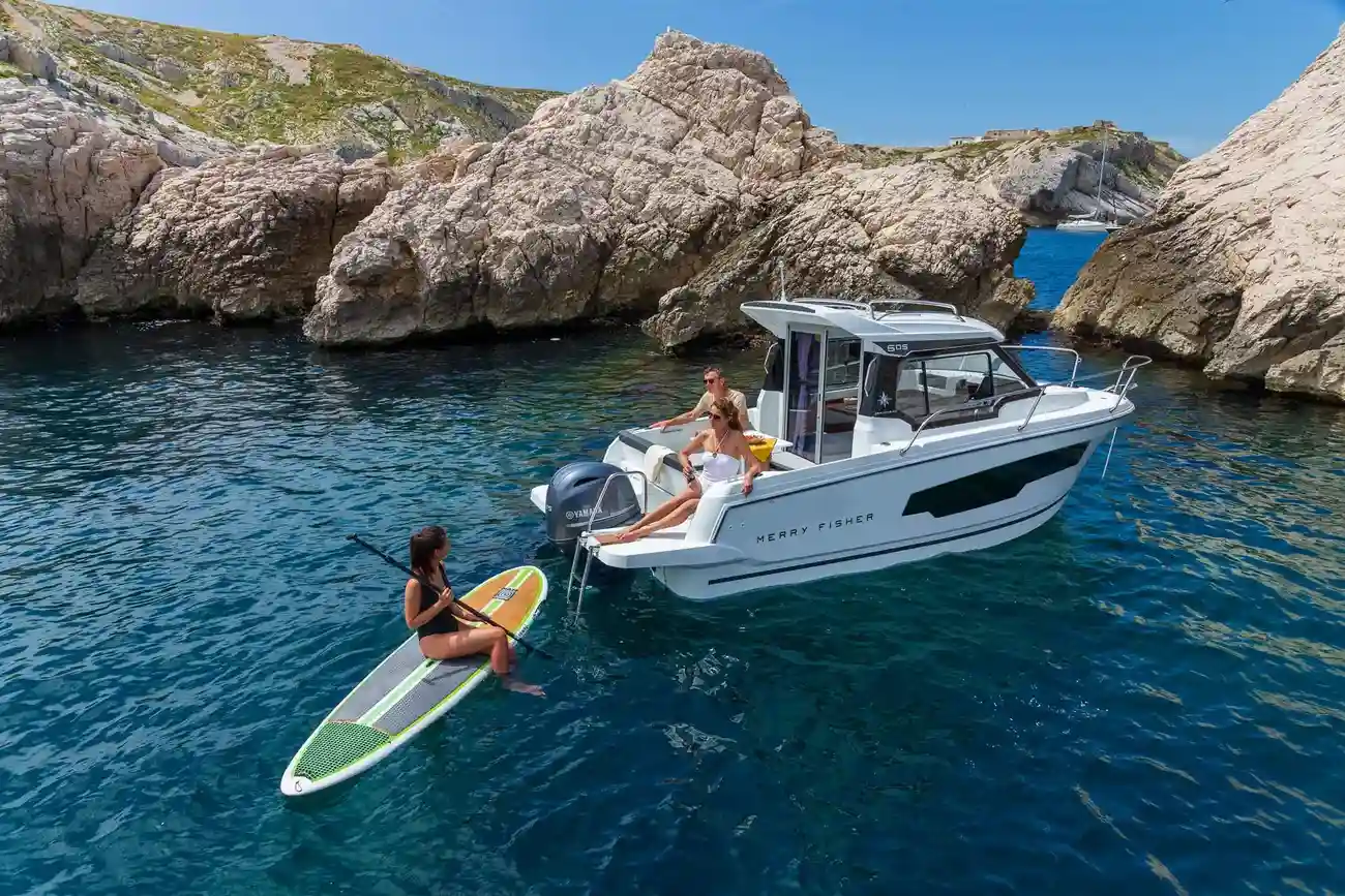Optimised space, clever layouts, and practical equipment make the Merry Fisher 605 the ideal boat to experience your first outings at sea in comfort and with peace of mind.