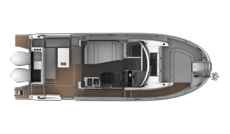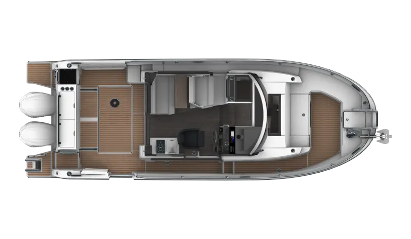 A large aft module presents multiple options, in function with your preferences: storage, galley, grill, livewell…
