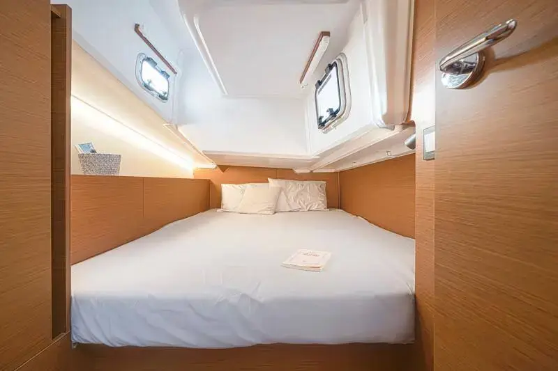 The bright, airy, interior space reveals a clean, contemporary aesthetic for a calm, comfortable atmosphere. Ingenuity and attention to detail are equally evident: a rectangular berth in the forward cabin, a daybed on the keel box for greater comfort while sailing on more agitated waters, and the possibility of having three spacious cabins or two, with two separate showers and a storage locker. With the Sun Odyssey 380, fluidity and serenity characterise life on board as much as cruising.